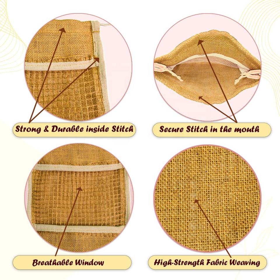 ชื่อสินค้า:ถุงผ้าป่านธรรมชาติแบบมีเชือกรูดสำหรับใส่ผลผลิต