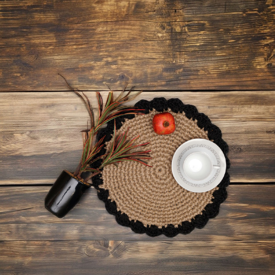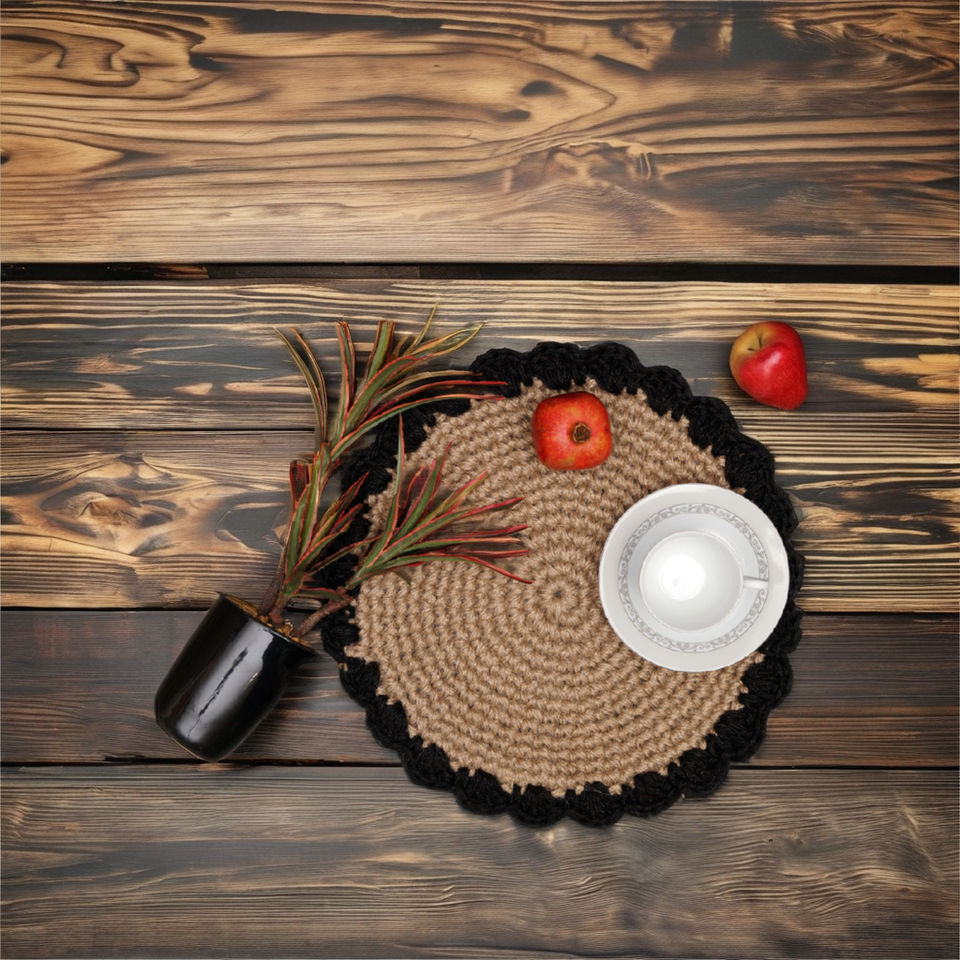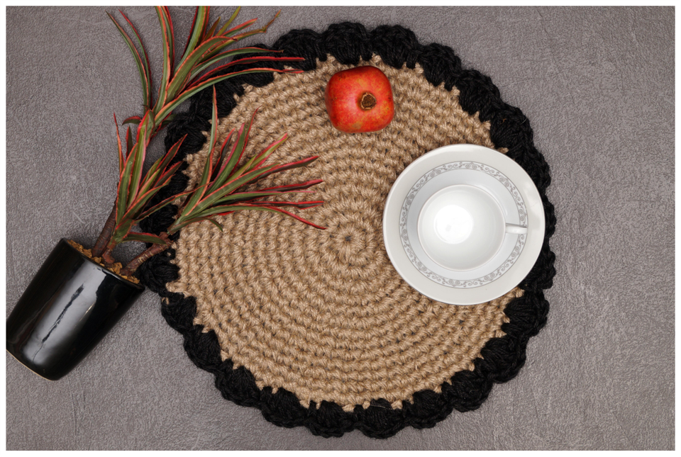 แผ่นกันความร้อนปอกระเจาธรรมชาติถักด้วยมือทรงกลมแผ่นรองจานสำหรับโต๊ะอาหาร