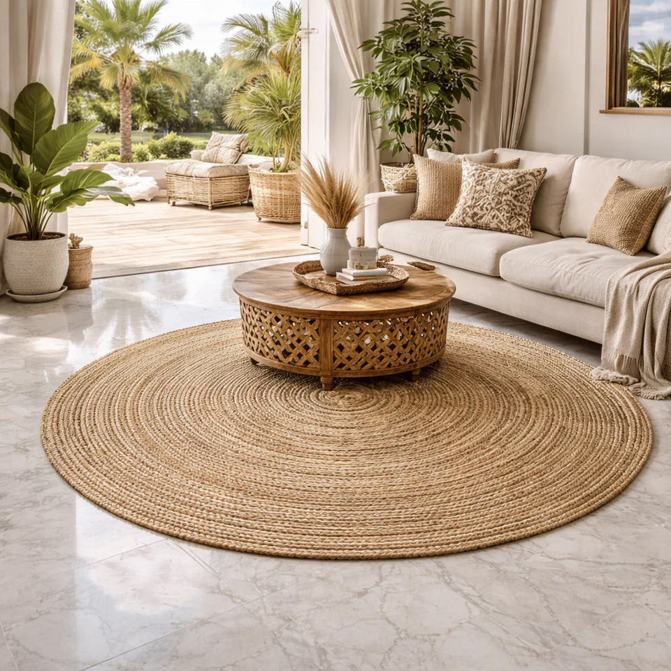 พรมปอกระเจาธรรมชาติสำหรับห้องนั่งเล่นการตกแต่งห้องนอนและบ้านด้วยเส้นใยที่ทนทานและพื้นผิวที่สะดวกสบายสำหรับการใช้งานในชีวิตประจำวัน