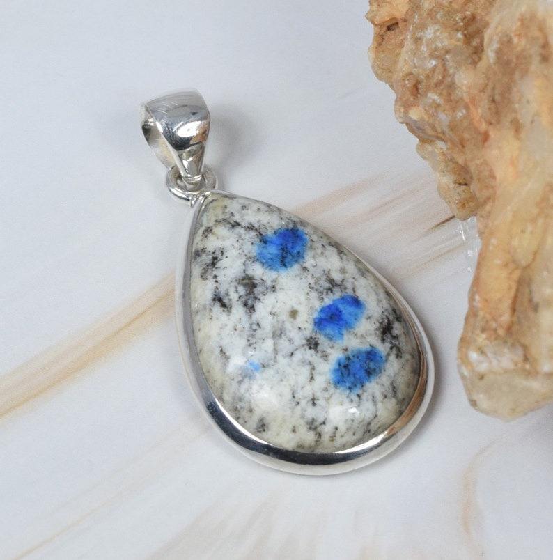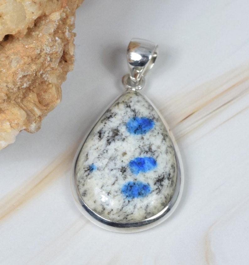 ธรรมชาติ K2 Jasper 925 เงินสเตอร์ลิงจี้เครื่องประดับทําด้วยมือเดือนมีนาคม Birthstone ลูกแพร์รูปร่างจี้ของขวัญวันเกิด