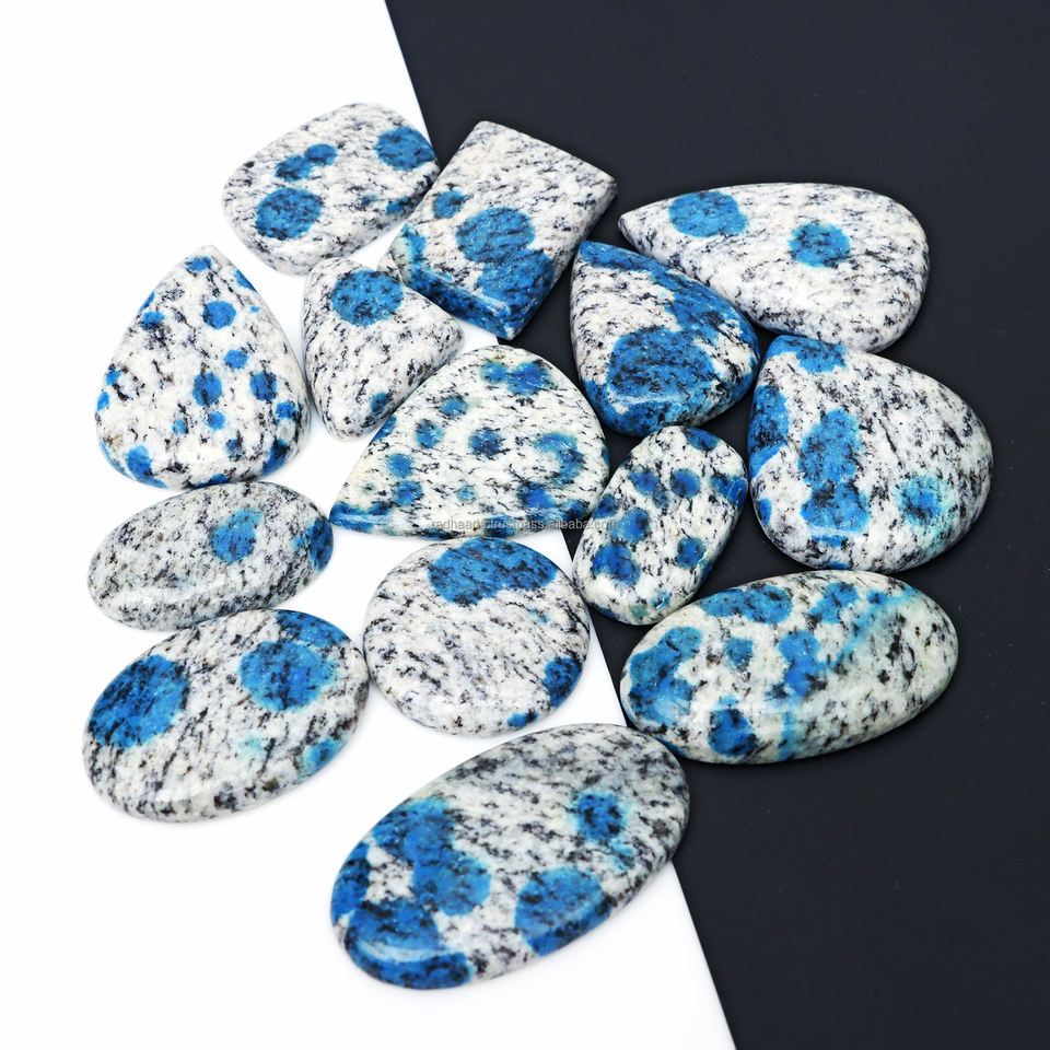 พลอยแจสเปอร์ K2 ธรรมชาติทรงหลังเบี้ย สีขาวและน้ำเงิน ขนาด 20-35 มม. เปลี่ยนสีได้ เหมาะสำหรับแหวน จี้ เครื่องประดับเงินแท้ 925