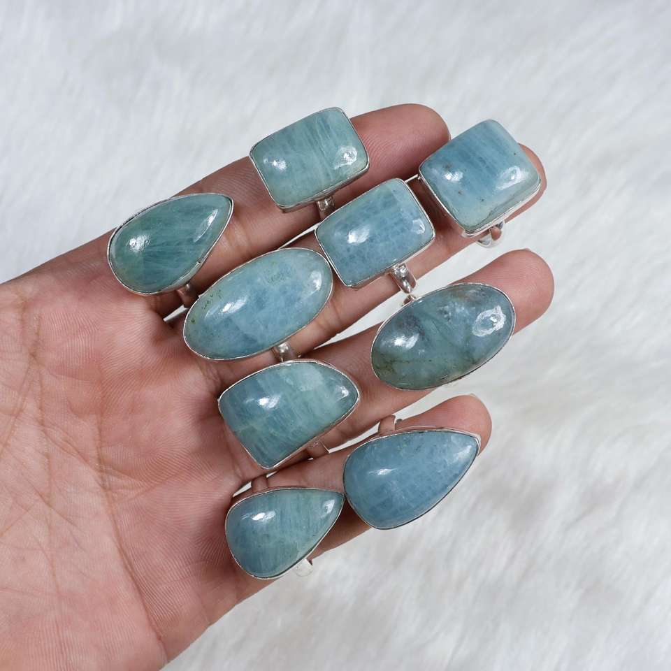 ชุดแหวนเพชรไคยาไนต์ธรรมชาติสำหรับงานแต่งงานเครื่องประดับเงินสไตล์ลำลองขายส่งจำนวนมาก