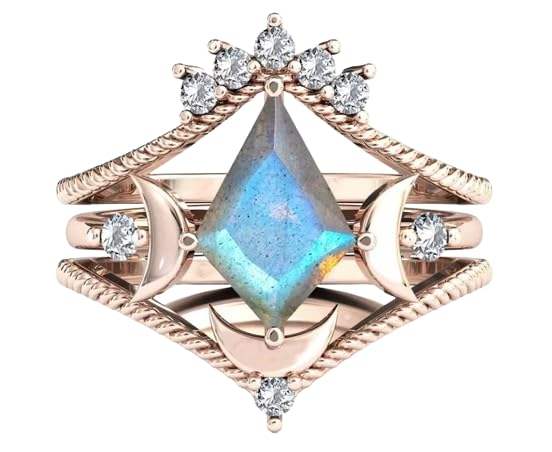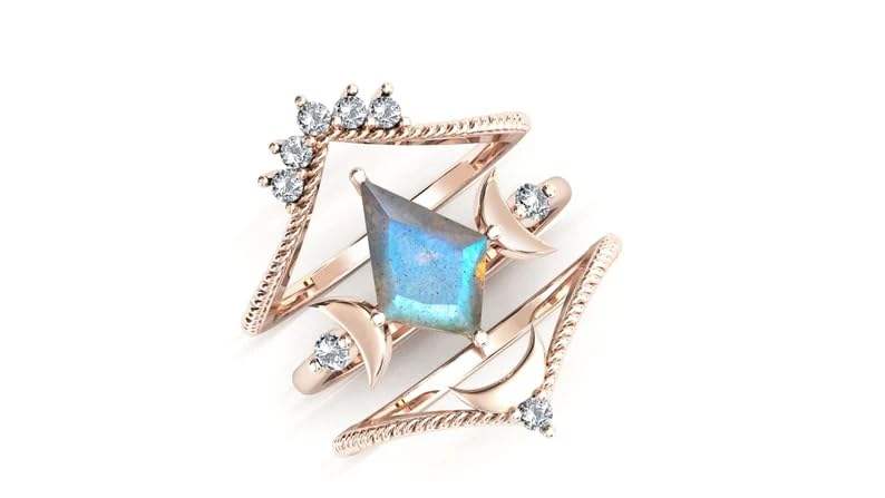 Labradorite Moissanite Gemstone Ring