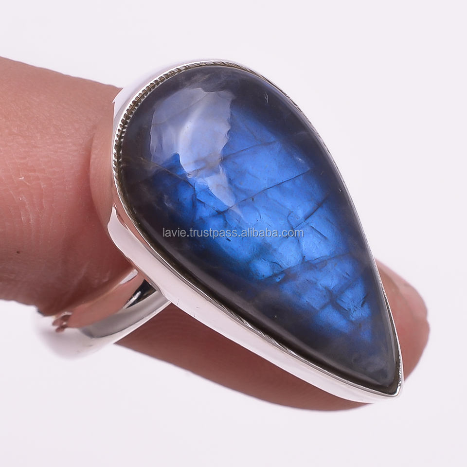 ลาบราโดไรต์ธรรมชาติ 925 เงินสเตอร์ลิงผู้หญิงและเด็กผู้หญิงแฟชั่นเครื่องประดับแหวนเครื่องประดับทําด้วยมือที่กําหนดเอง