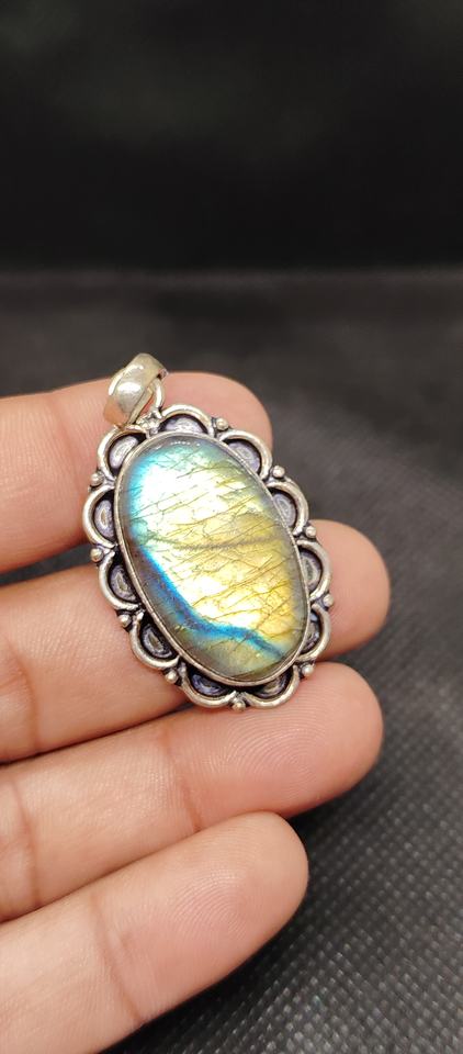 จี้ทองเหลืองประดับลาบราโดไรต์ธรรมชาติ เครื่องประดับอัญมณีทำมือ