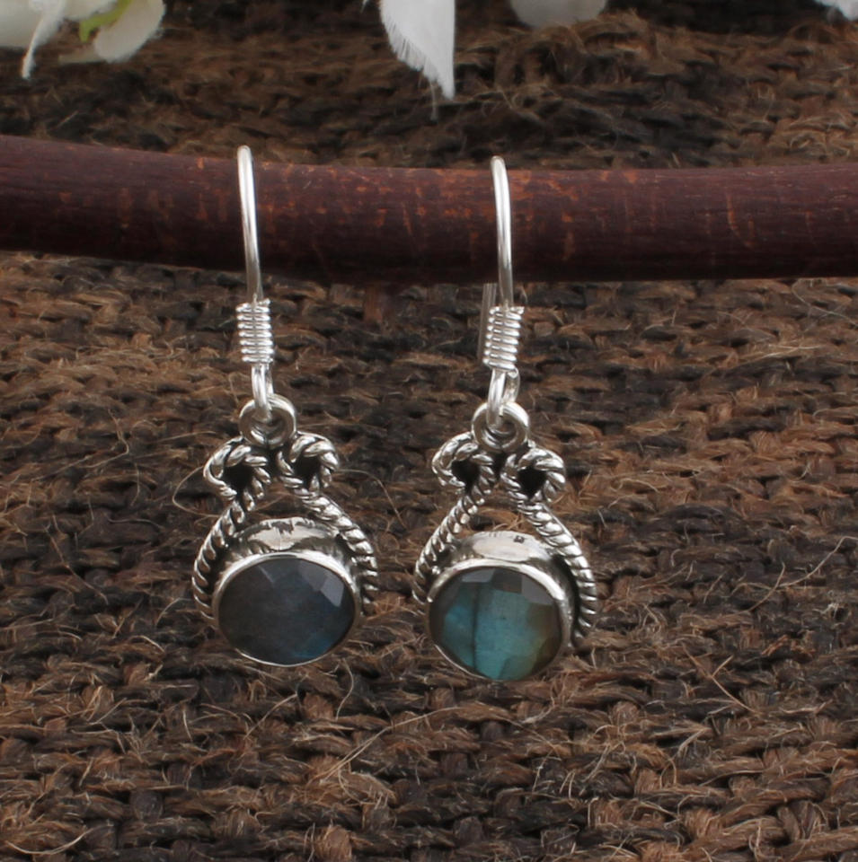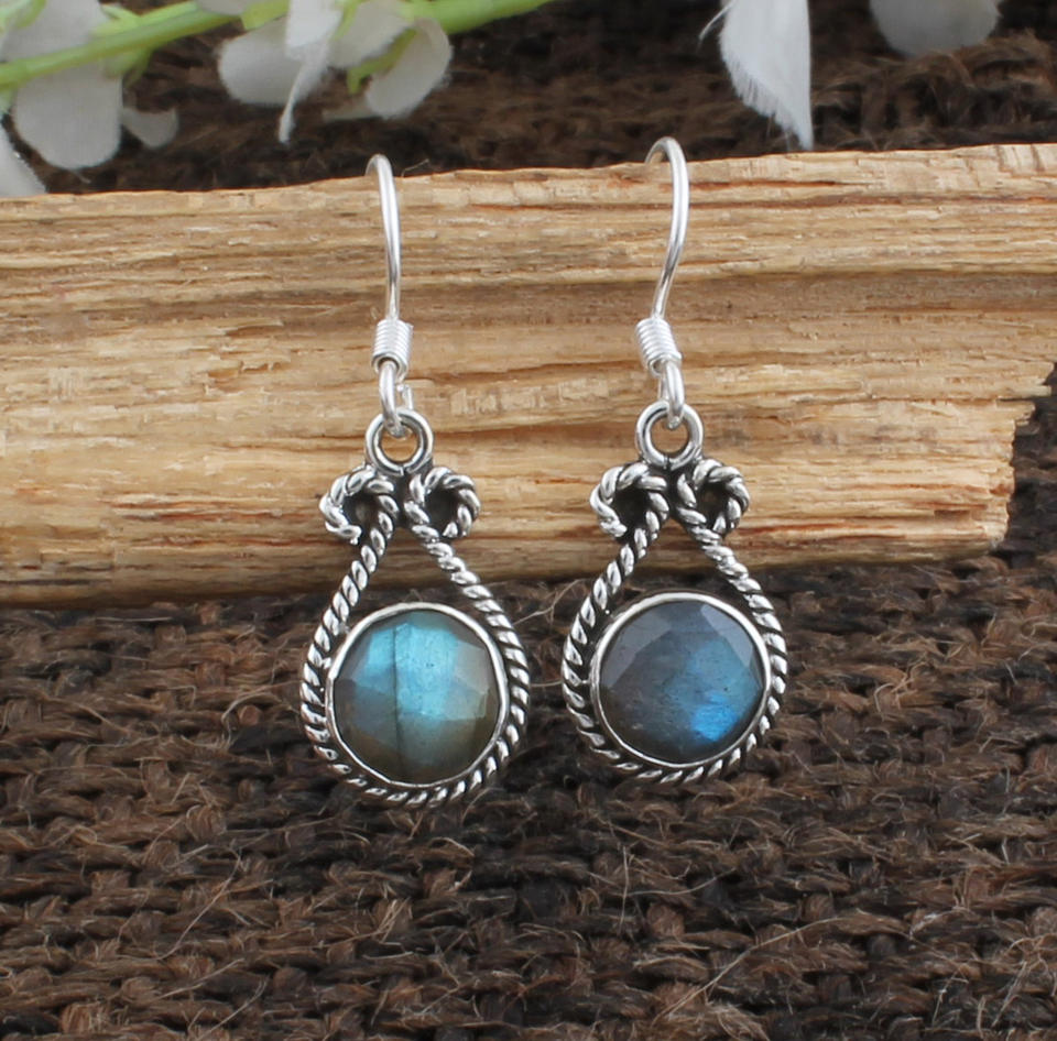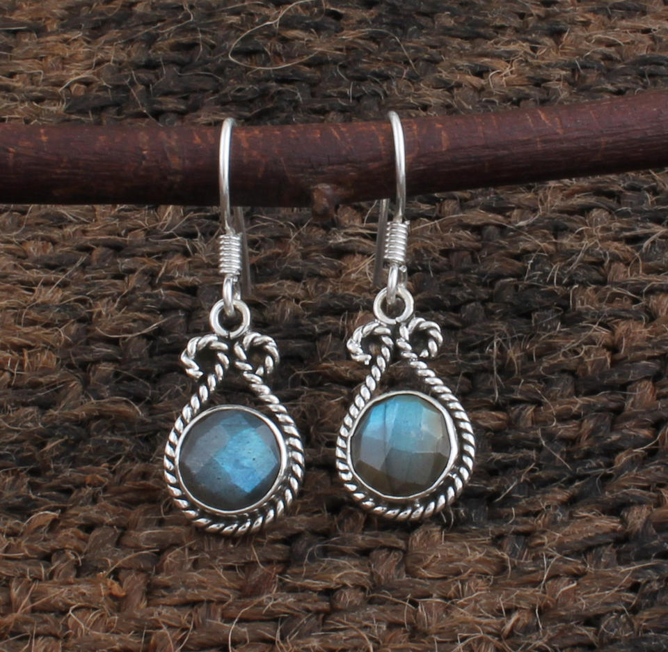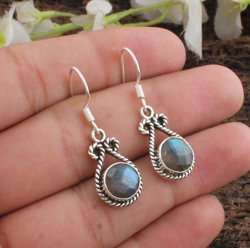 ต่างหูลาบราดอไรต์ธรรมชาติทรงหยดน้ำ เงินแท้ 925 พลอยสีน้ำเงินไฟ งานแฮนด์เมด เครื่องประดับหรูหราสำหรับงานแต่งงาน ขายส่ง