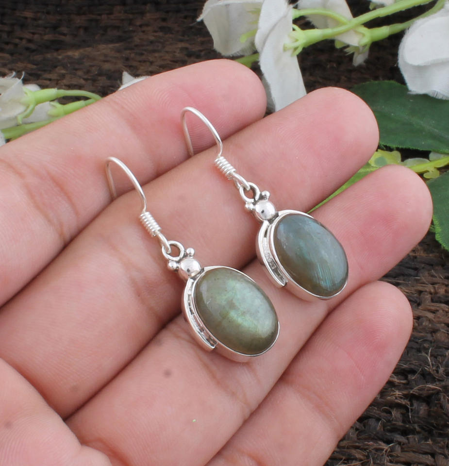 ต่างหูหินลาบราดอไรต์ธรรมชาติ เงินแท้ 925 สีฟ้ารูปหยดน้ำ ทำด้วยมือ ประดับอัญมณีทรงหยดน้ำ หรูหรา เหมาะเป็นของขวัญงานแต่งงานสำหรับผู้หญิง
