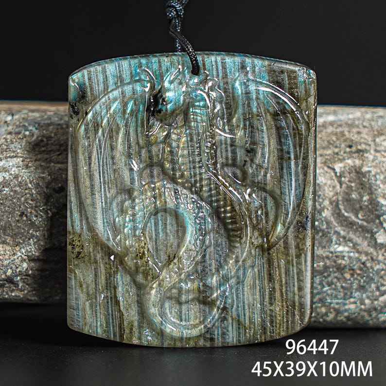 Natural Labradorite Flying Dragon Pendant Handmade Blue Flash Gemstone Necklace Elegant Gift for Her