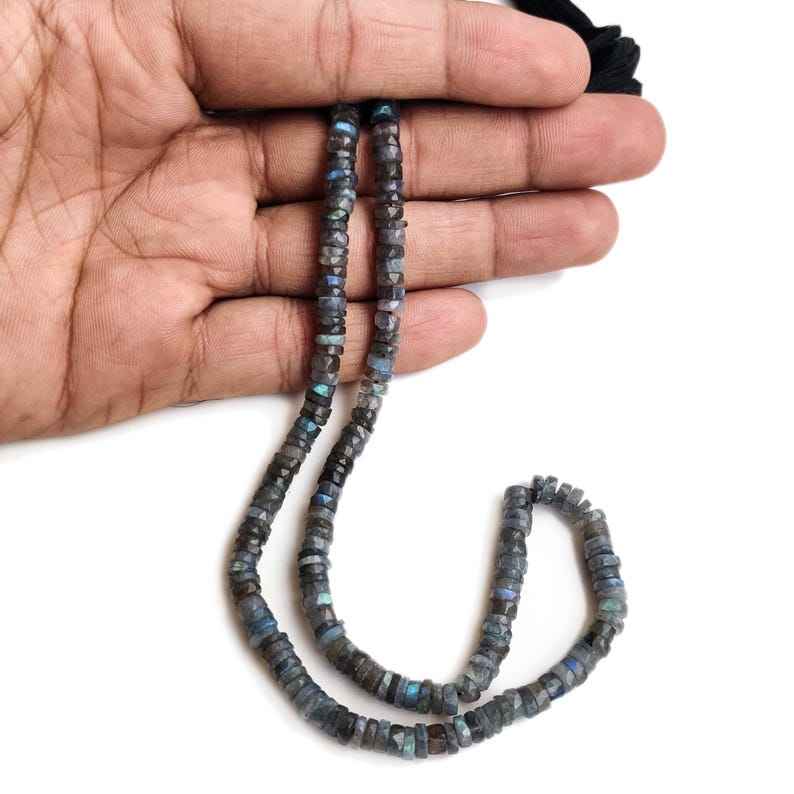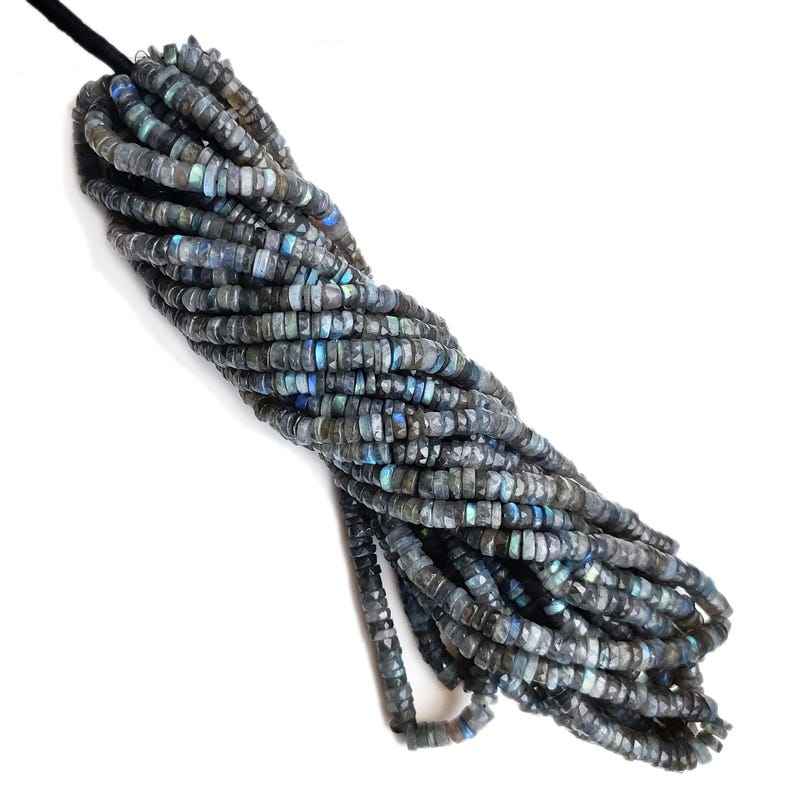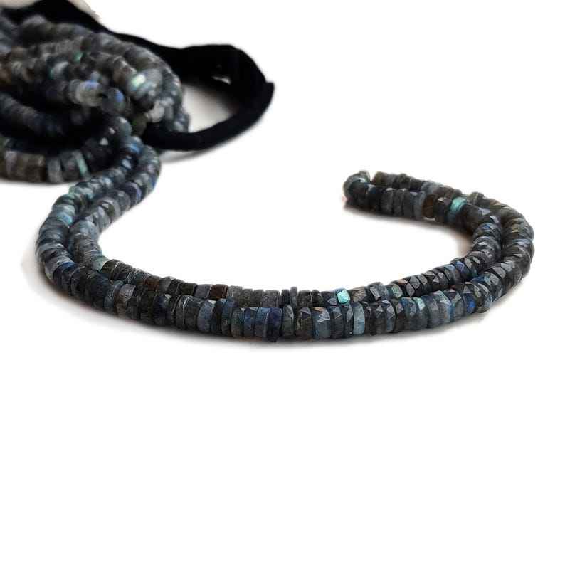 ลูกปัดพลอยลาบราดอไรต์ธรรมชาติทรงยางรถยนต์เจียระไน ร้อยเป็นเส้นสำหรับทำเครื่องประดับ คุณภาพสูง