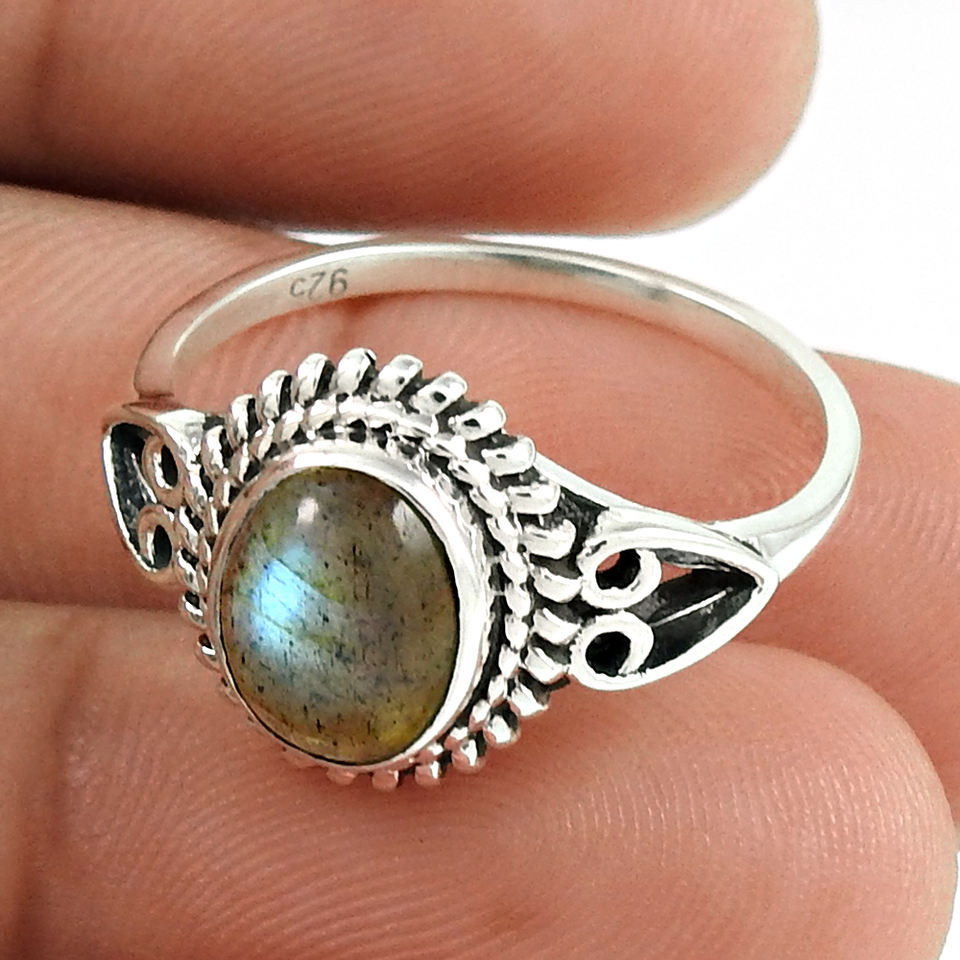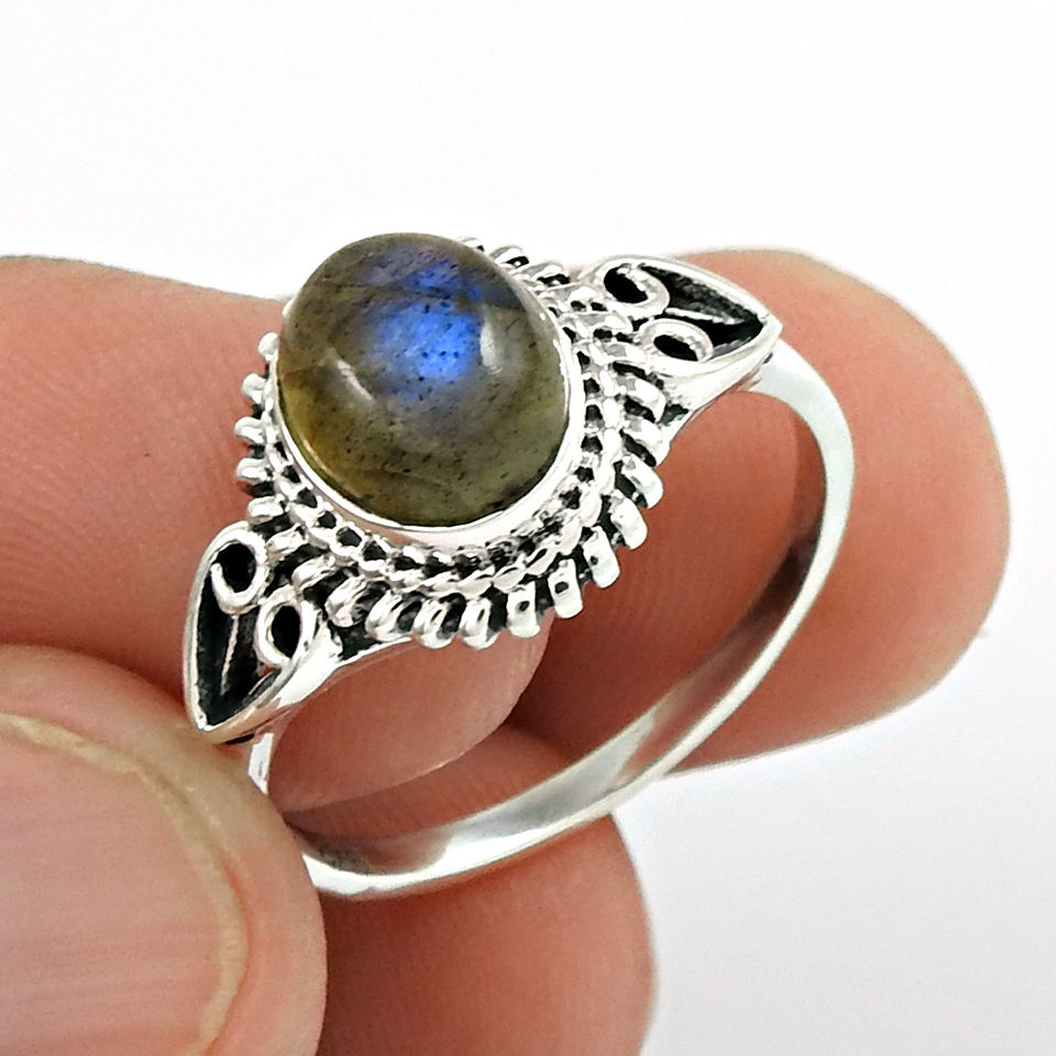 อัญมณีลาบราดอไรต์ธรรมชาติแหวนแต่งงานแหวนหมั้นสวยงามนิ้วสวยสำหรับผู้หญิง925แหวนเงินสเตอร์ลิงขายส่ง