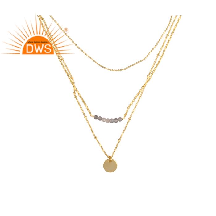 ผู้จัดจำหน่ายเครื่องประดับสร้อยคอทองเหลืองประดับพลอยลาบราโดไรต์ดีไซน์เนอร์แบบสามชั้น