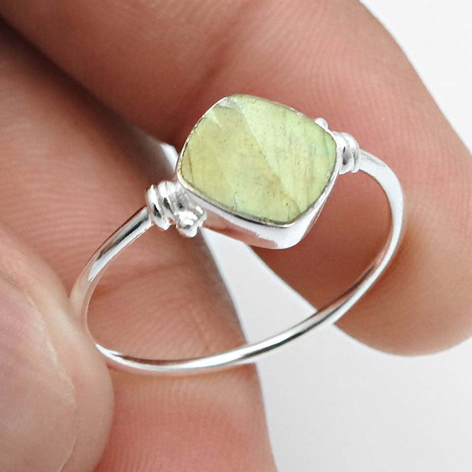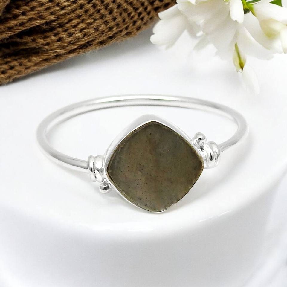 หินลาบราดอไรต์ธรรมชาติรูปทรงเบาะรองนั่งดูสง่างามแหวน925เงินสเตอร์ลิงทำด้วยมือเครื่องประดับขายส่ง