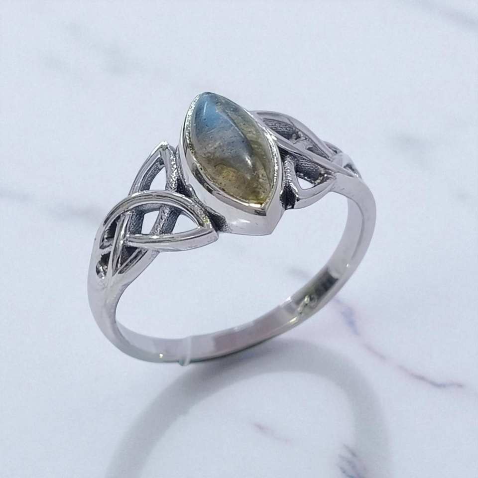 แหวนพลอยลาบราดอไรต์ธรรมชาติ เงินแท้ 925 แหวนทำมือ ราคาขายส่ง เครื่องประดับเงิน