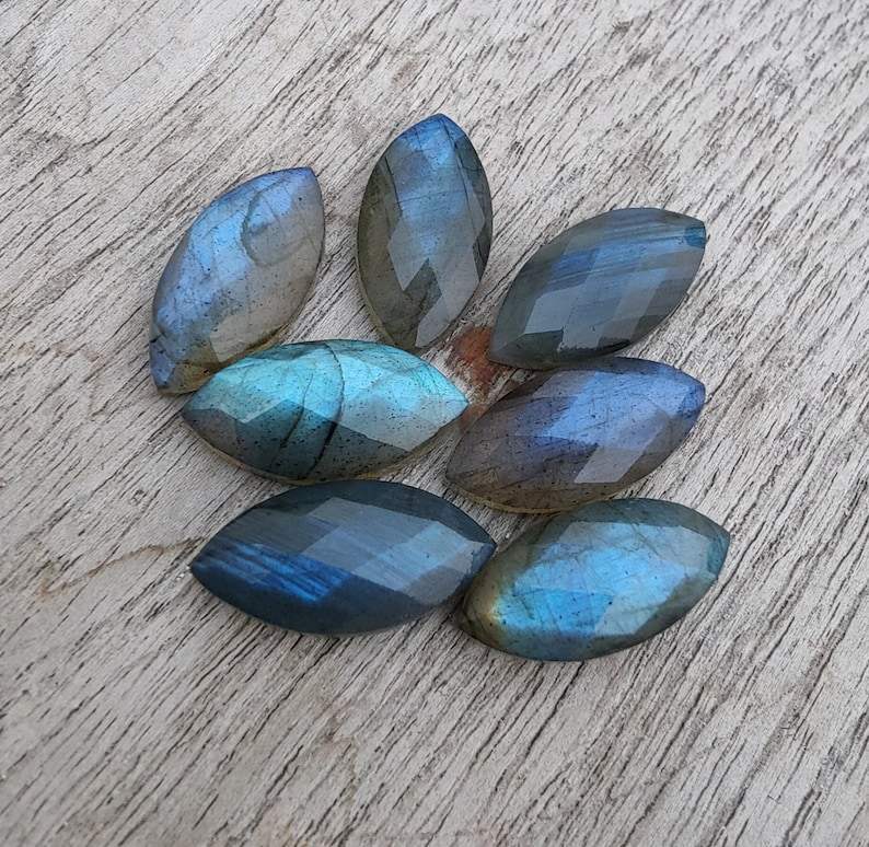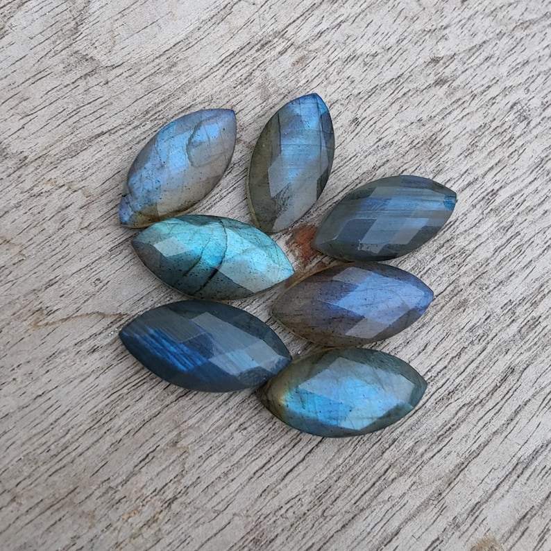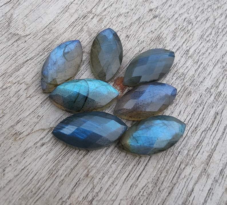พลอยลาบราดอไรต์ทรงมาร์คีส์ คุณภาพเยี่ยม แบบเจียระไนเช็คเกอร์คัท สำหรับทำเครื่องประดับ แหวน จี้ และงานฝีมือ