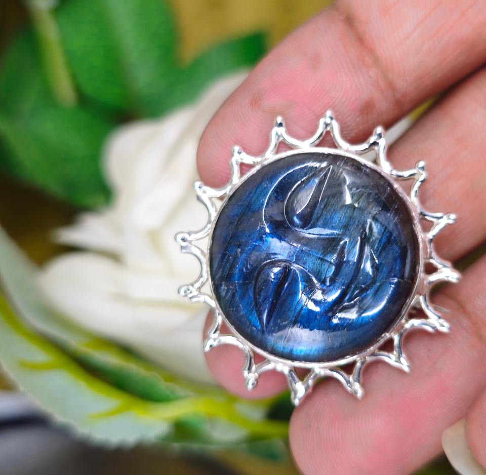 เข็มกลัด925เงินรูปพระจันทร์สไตล์ลาบราดอไรต์ธรรมชาติทำด้วยมือสำหรับงานแต่งงานหรือสำหรับเด็ก