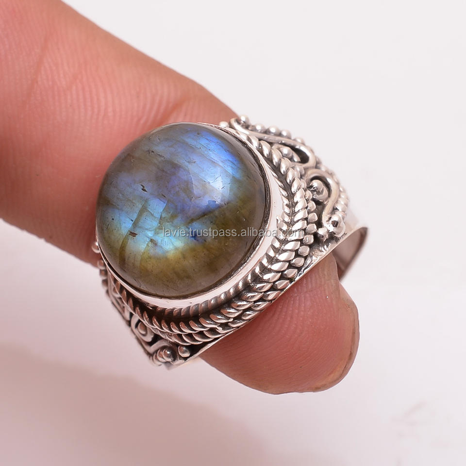 แหวนลาบราดอร์ไทต์ธรรมชาติขายส่งเครื่องประดับชั้นดี เครื่องประดับเงิน 925 แหวนเงินแฮนด์เมดซัพพลายเออร์