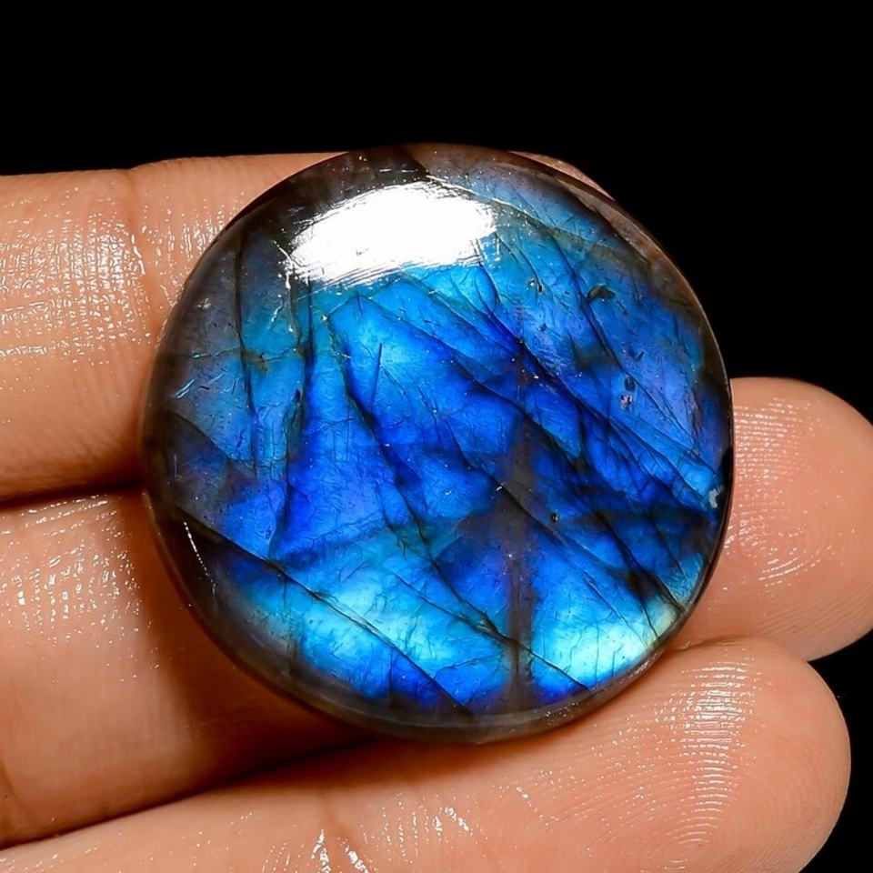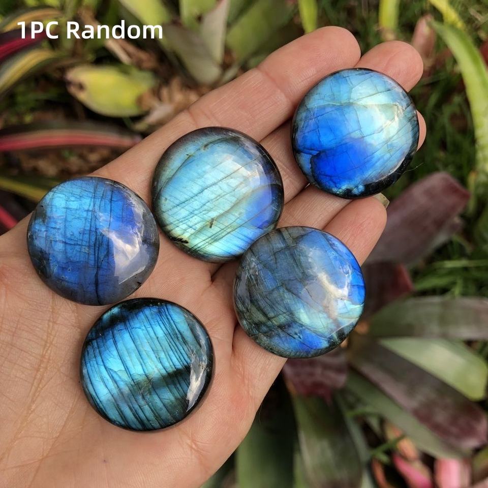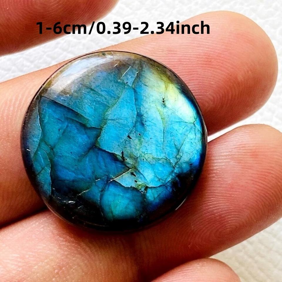 จี้หินลาบราดอไรต์ทรงกลมธรรมชาติ DIY เครื่องประดับหินมูนสโตนสีฟ้าประกาย สร้อยคอทำมือ ของขวัญสำหรับผู้หญิง
