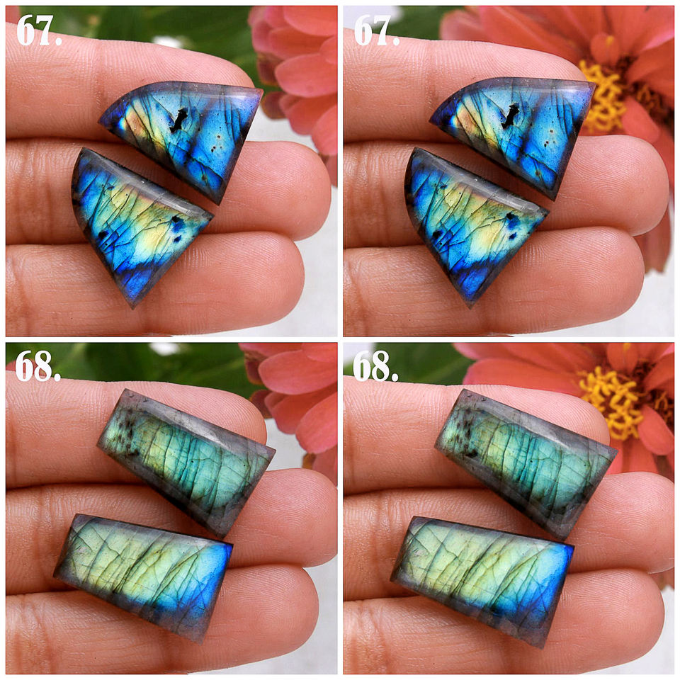 หินลาบราโดไรต์ธรรมชาติหลากสี ทรงหลังเบี้ยเรียบ คู่จับคู่ งานแฮนด์เมด สำหรับทำต่างหู อัญมณี