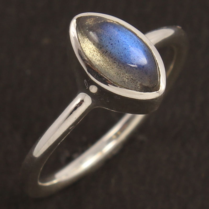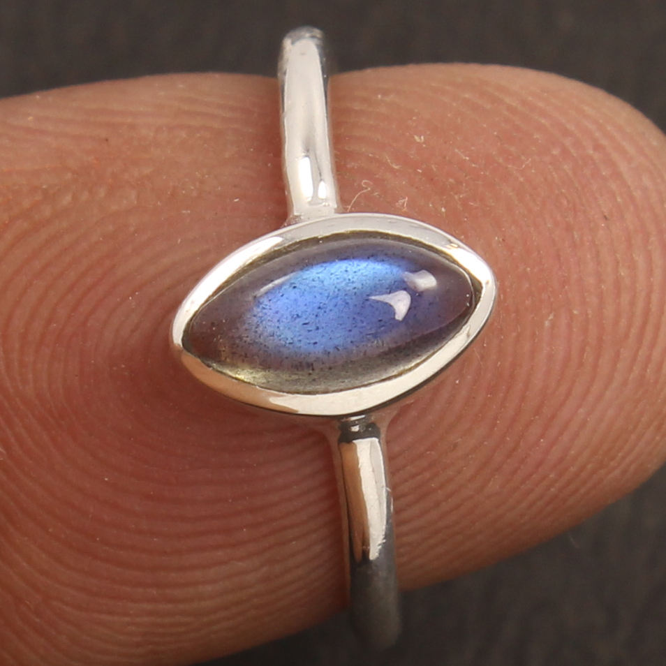แหวนเงินสเตอร์ลิงลาบราดอไรต์ธรรมชาติมาพร้อมกับมาร์คีสตัดขนาด5x8มม. พลอยสีฟ้าไฟแลบราโดไรต์ขายส่ง