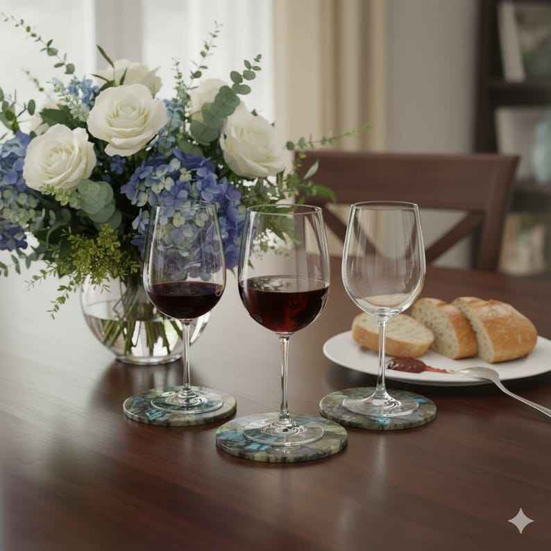 ชุดจานรองแก้วหินลาบราดอไรต์ธรรมชาติ ดีไซน์หรูหรา สไตล์ธรรมชาติ สำหรับตกแต่งโต๊ะอาหาร ใช้ในบ้านและห้องครัว