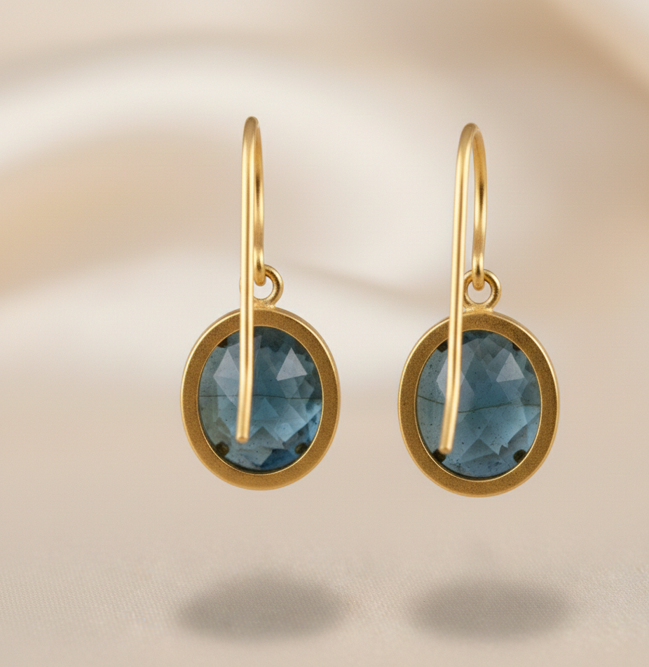 ต่างหูเงินแท้ 925 ชุบทอง 18K ประดับลาบราโดไรต์ ขนาด 10 มม. พลอยธรรมชาติทรงหยดน้ำ เครื่องประดับอินเดีย ราคาขายส่ง