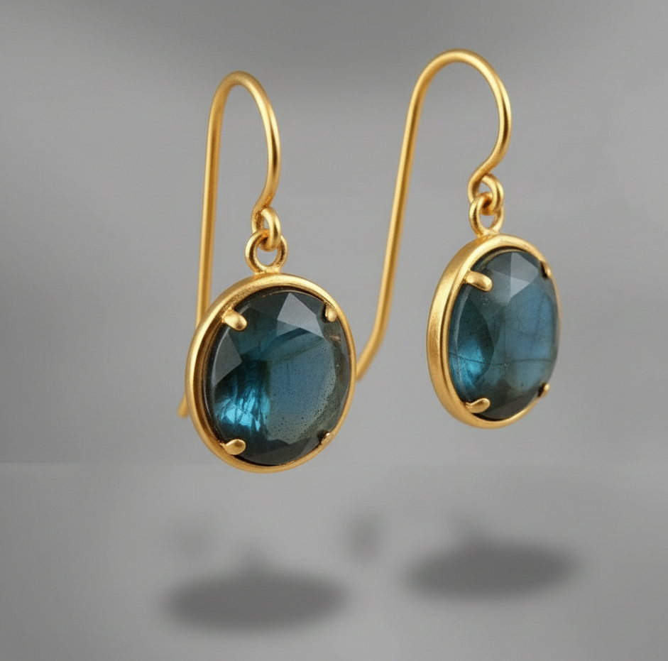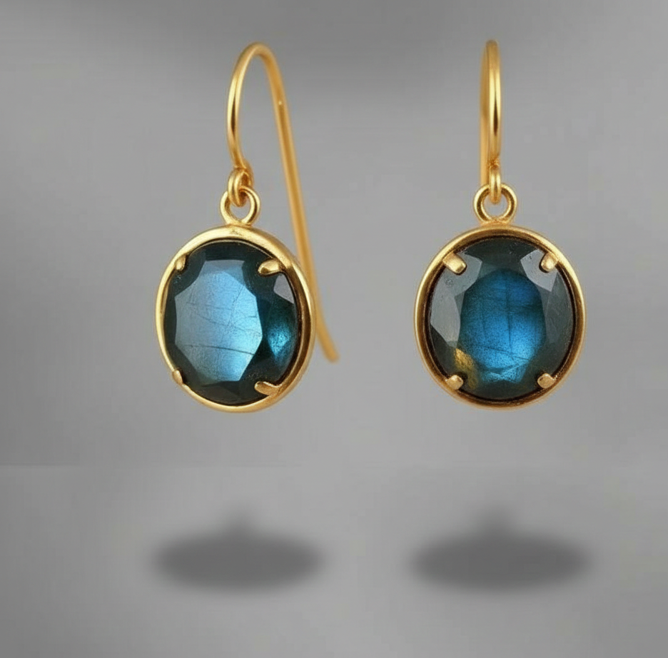 ต่างหูลาบราโดไรต์เงินแท้ 925 ชุบทอง 18K