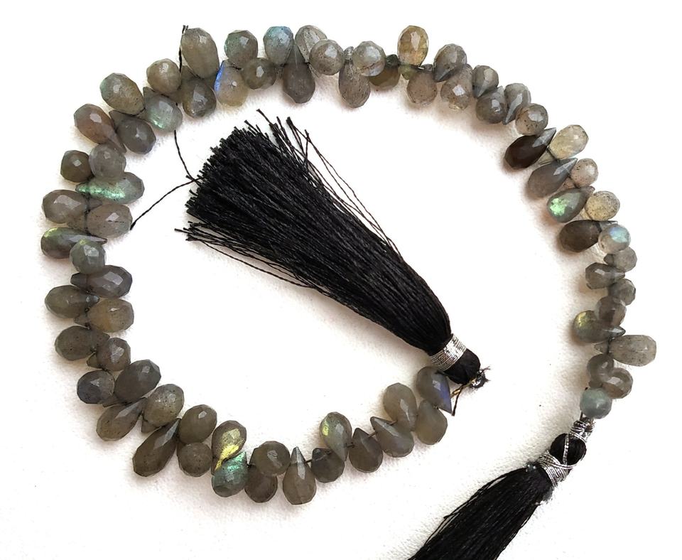 ลาบราดอไรต์ธรรมชาติรูปหยดน้ำตาเหลี่ยมลูกปัดทำสร้อยคอสวยงามไฟสีฟ้า DIY เครื่องประดับขายส่ง