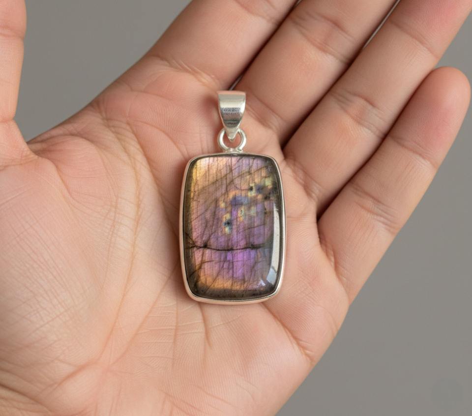 จี้คริสเตียนเงินแท้ทิเบตประดับลาบราดอไรต์ธรรมชาติ ดีไซน์ปีก สวยงามทันสมัย เหมาะสำหรับงานแต่งงานของผู้หญิง