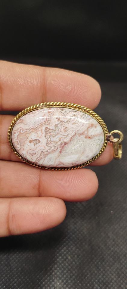 จี้ทองเหลืองประดับด้วยอาเกตธรรมชาติ | สร้อยคอทองชุบแบบเชื่อมต่อ ประดับพลอยแบบฝังขอบ งานแฮนด์เมด สำหรับงานแต่งงาน