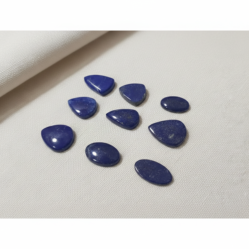 พลอยลาพิสลาซูลีธรรมชาติทรงหลังเบี้ย ทำด้วยมือ เรียบเนียน หินกึ่งมีค่า บำบัดรักษา ทุกทรงและทุกขนาด หินหลวมคละแบบ