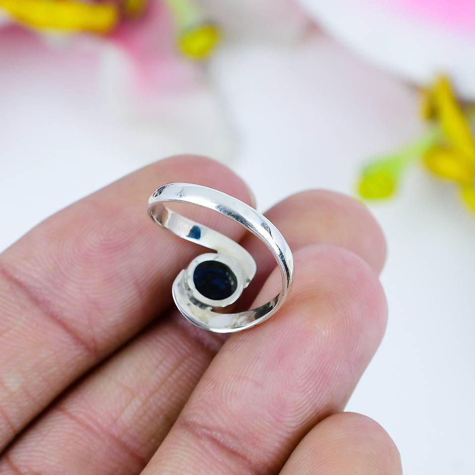 แหวนลาพิสลาซูลีธรรมชาติทรงหลังเบี้ย ตัวเรือนเงินแท้ 925 ประดับพลอยสีน้ำเงินด้วยงานฝีมือ