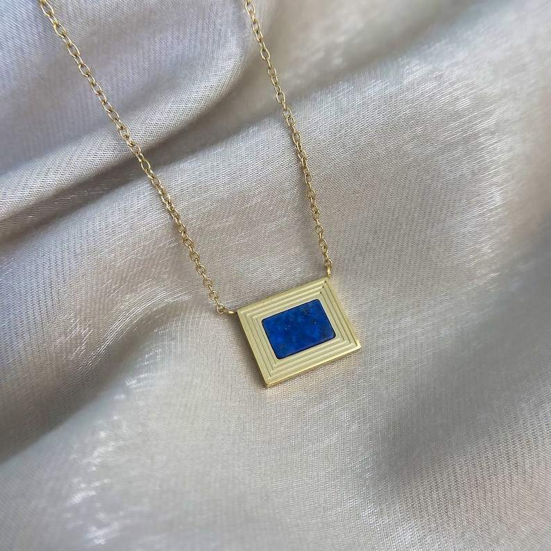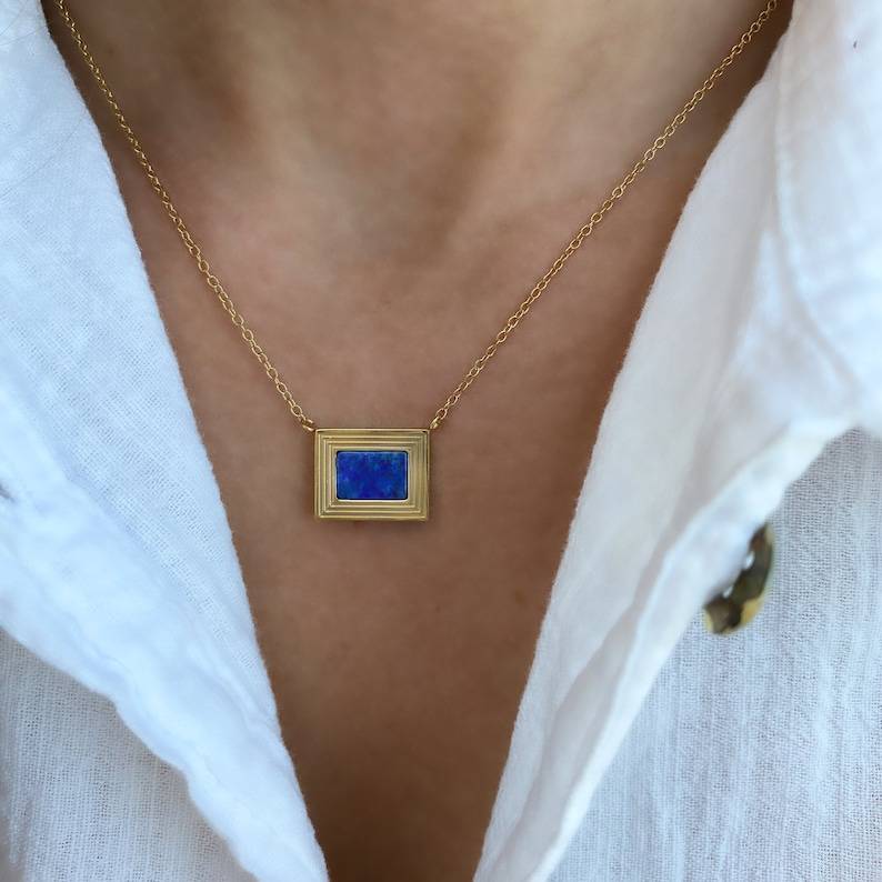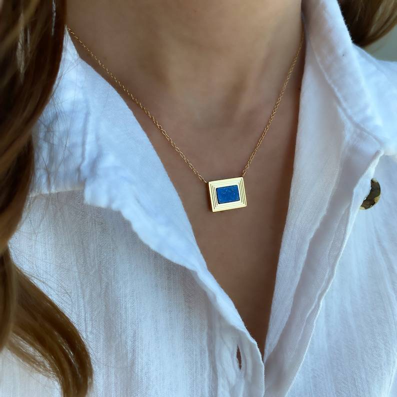 สร้อยคอลาพิส ลาซูลีทรงคุชชั่นเปลี่ยนสีได้ สำหรับผู้หญิงและเด็กผู้หญิง ของขวัญวันครบรอบวันเกิด