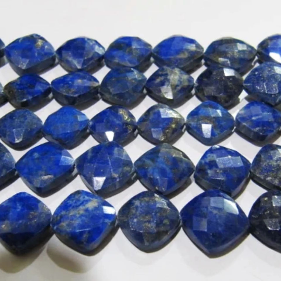 ลูกปัดลาพิส ลาซูลี สีน้ำเงินธรรมชาติ คุณภาพสูง รูปทรงคุชชั่นและทรงบริโอเล็ต ขนาด 11-12 มม. ความยาว 8 นิ้ว สำหรับทำเครื่องประดับ