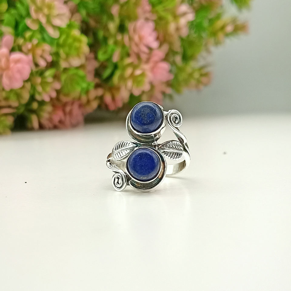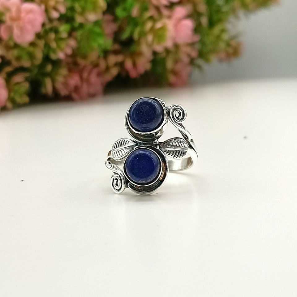 แหวนพลอยลาพิส ลาซูลีธรรมชาติ แหวนเงินแท้ 925 ทำมือ สำหรับเด็กหญิงและสตรี