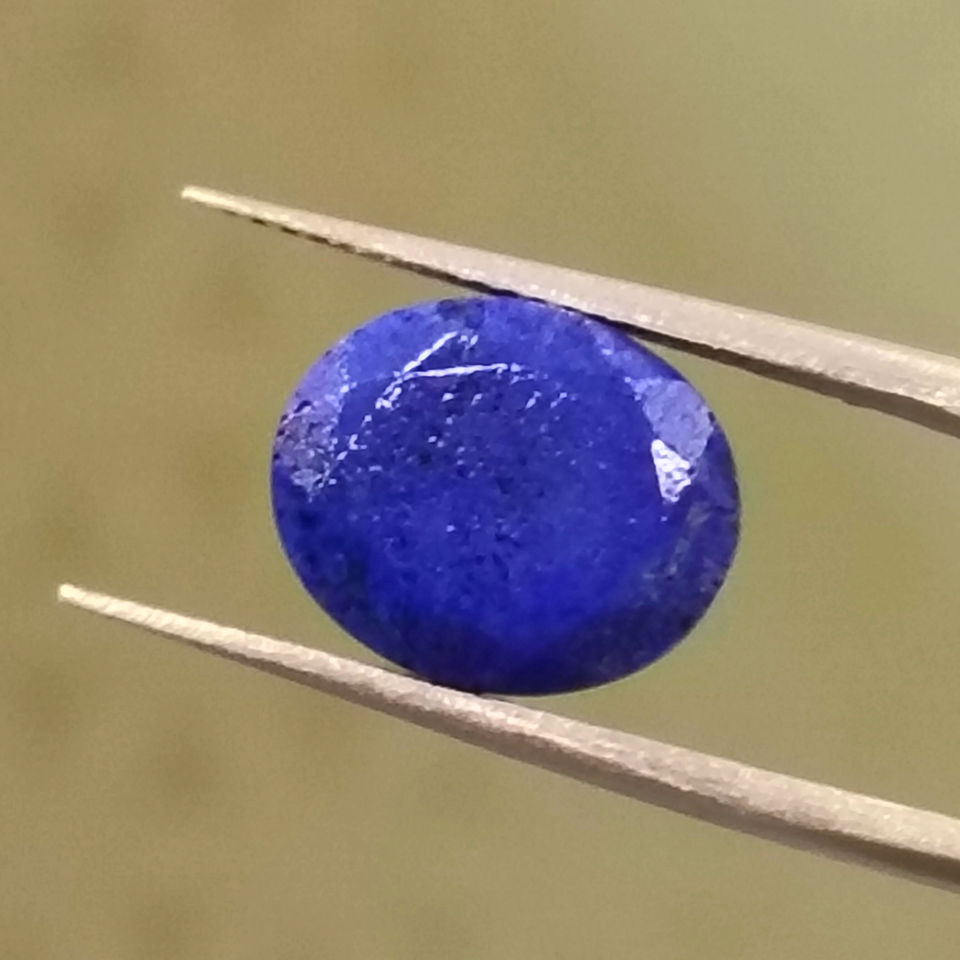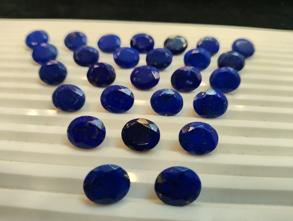 พลอยลาพิส ลาซูลีทรงรีสีฟ้าอ่อนธรรมชาติ ขนาด 11-12 มม. น้ำหนัก 4-6 กะรัต ขายส่งสำหรับทำเครื่องประดับ