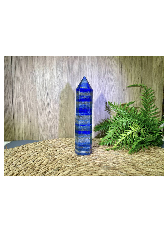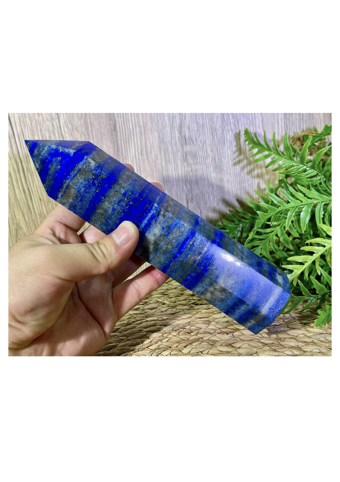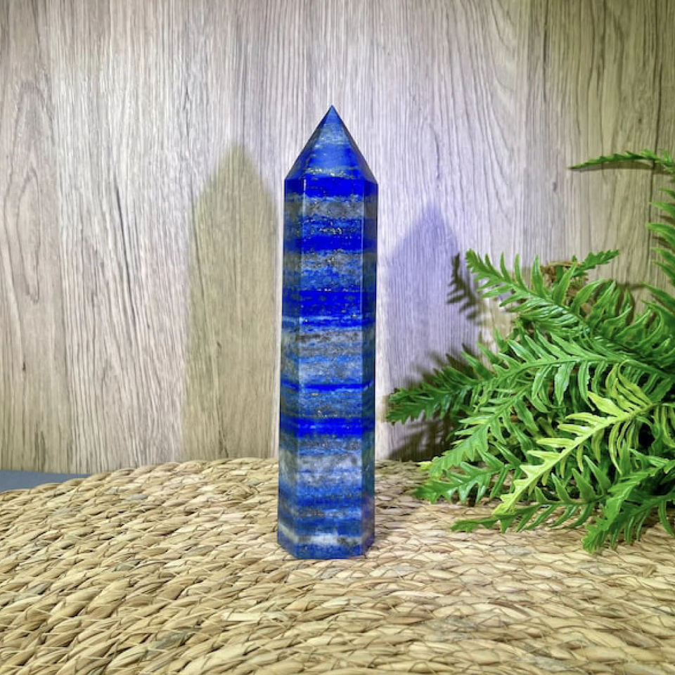หินลาพิส ลาซูลีธรรมชาติทรงแหลม, หินคริสตัลทรงโอเบลิสก์, ตัวอย่างแร่ธาตุ, การบำบัดด้วยเรกิและจักระ, ราคาขายส่ง