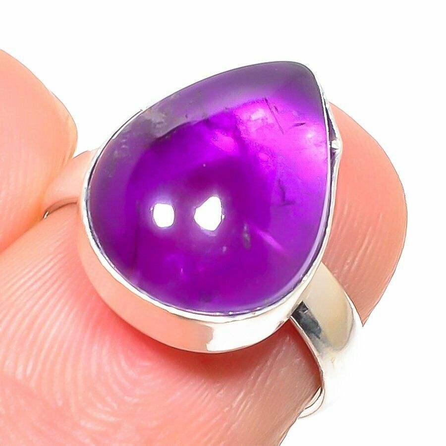 แหวนเงินแท้ประดับพลอยแอมะทิสต์สีม่วงธรรมชาติขนาดใหญ่ 10x12 มม. รูปทรงหยดน้ำ สไตล์โบฮีเมียน สำหรับงานแต่งงานแบบคริสเตียน เครื่องประดับอัญมณีคุณภาพสูง