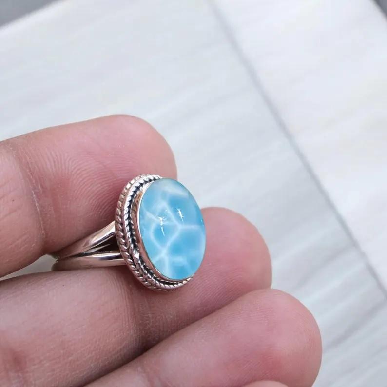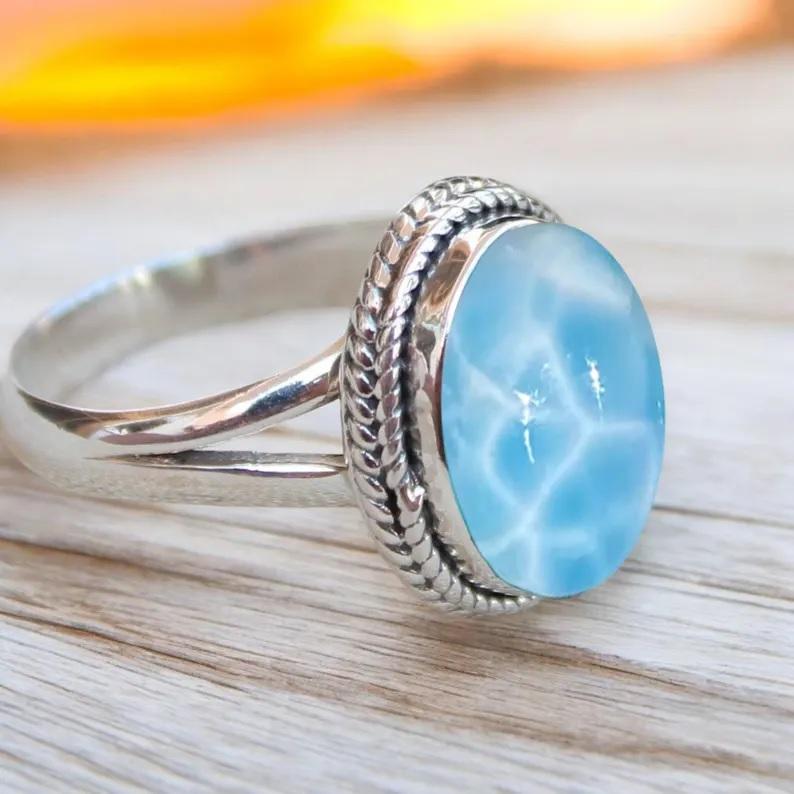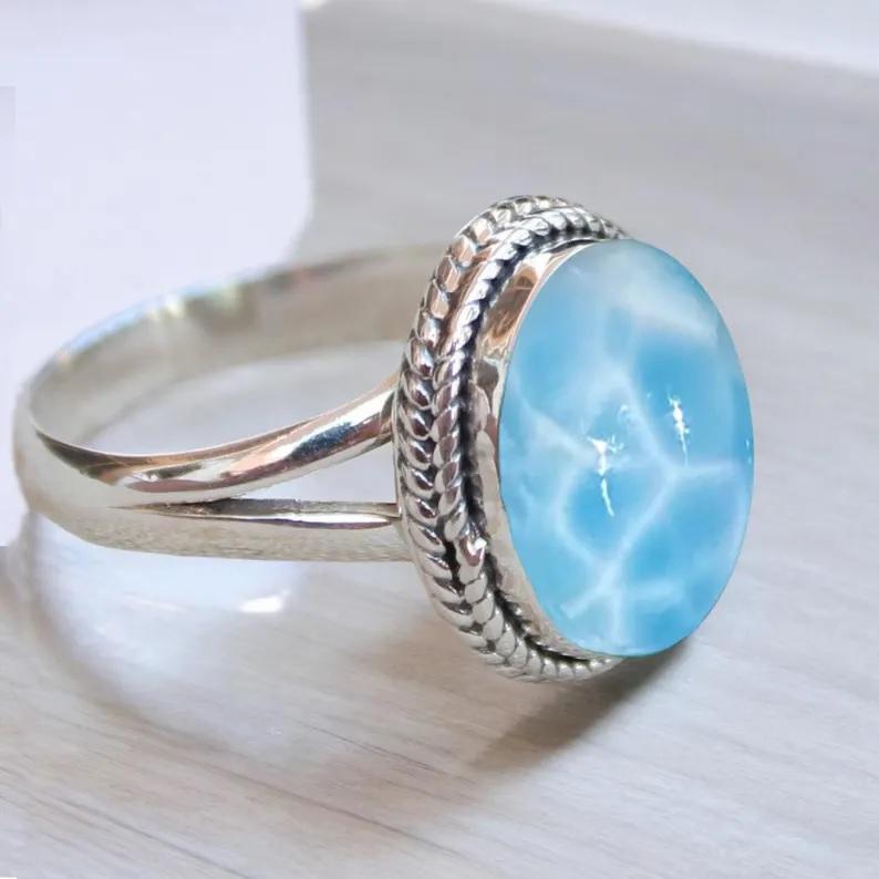 แหวนสัญญาอัญมณีแสนสวยสำหรับผู้หญิง925คริสเตียนลาริมาร์โบฮีเมียนจากธรรมชาติ