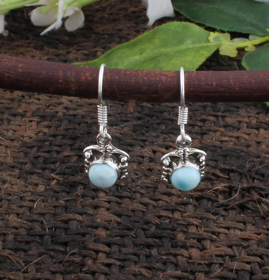 ต่างหูพลอยลาริมาร์ธรรมชาติ เงินแท้ 925 ทำมือ สไตล์วินเทจ หรูหรา ต่างหูแบบห้อย ของขวัญวันครบรอบแต่งงาน ของขวัญงานปาร์ตี้