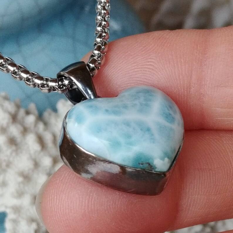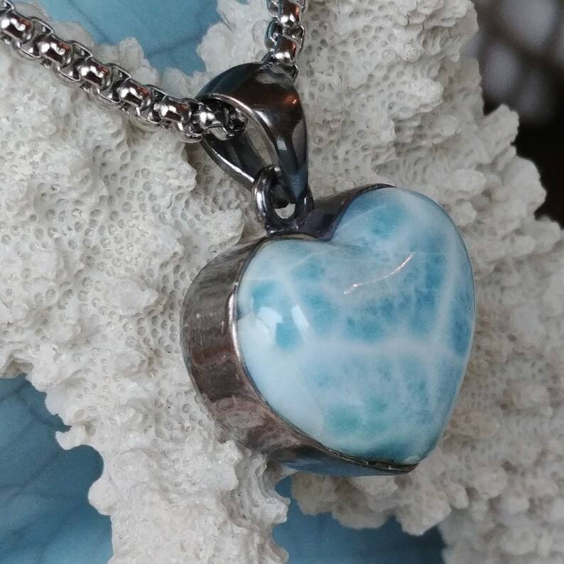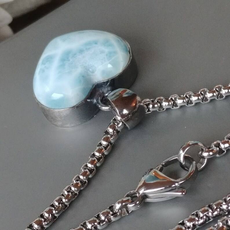 สร้อยคอจี้ลาริมาร์ธรรมชาติ-925แข็งจี้อัญมณีโดมิแกนทำด้วยมือ
