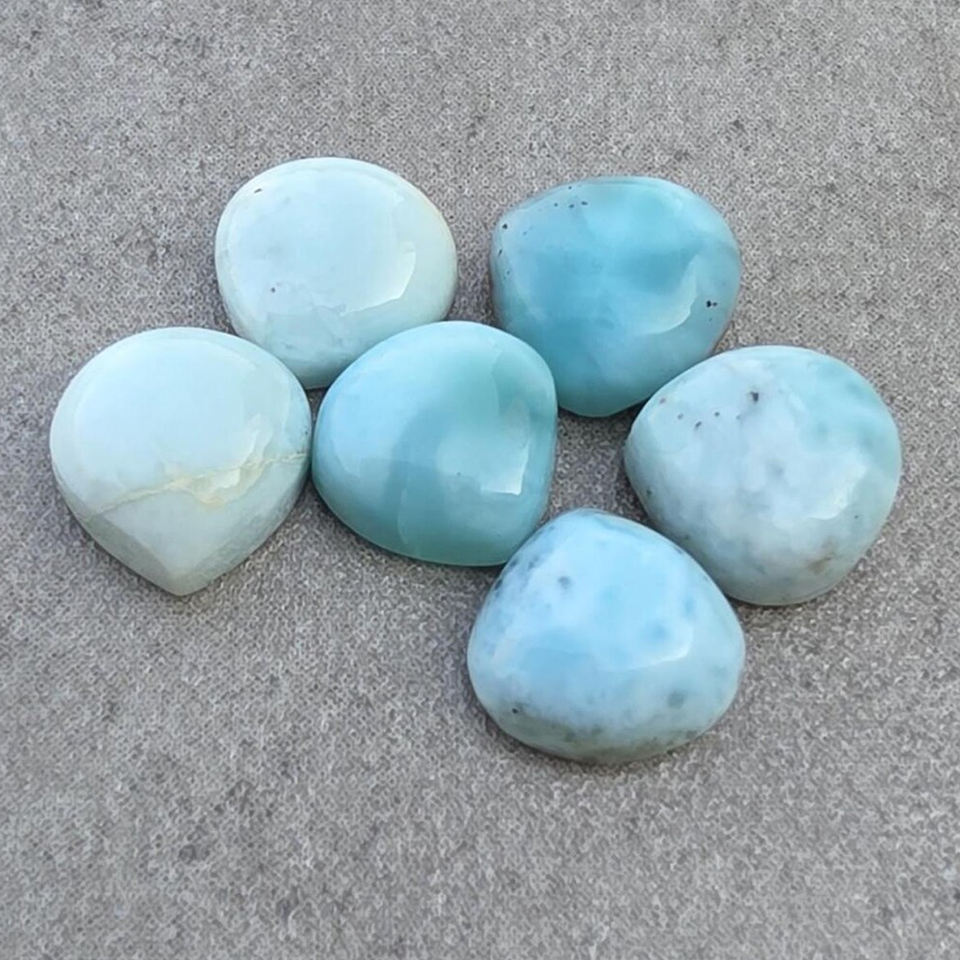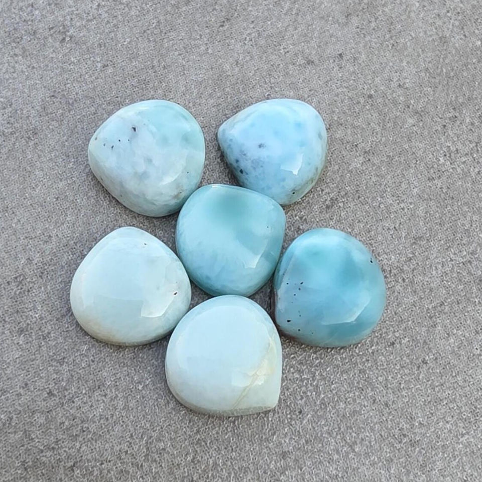 ลาริมาร์ธรรมชาติทรงหัวใจขัดเงา คาโบชอง หินมีค่าขนาดมาตรฐาน สำหรับขายส่ง อุปกรณ์ทำเครื่องประดับ