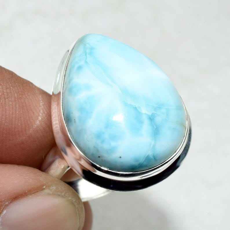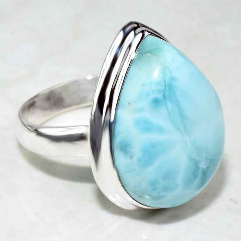 แหวนลาริมาร์ธรรมชาติทำด้วยมือ925สเตอร์ลิงเงินอัญมณีทรงหยดน้ำแหวนหรูหราสไตล์โบฮีเมียนไม่เหมือนใครของขวัญวันหยุดที่สมบูรณ์แบบ