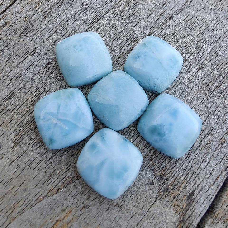 พลอยลาริมาร์ทรงสี่เหลี่ยมแบบคูชั่น คาโบชอง ขนาดปรับเทียบแล้ว สำหรับทำเครื่องประดับ มีทุกขนาด