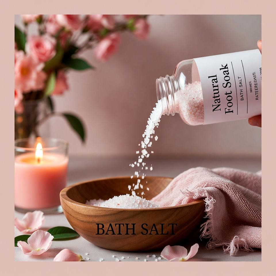 เกลือแช่เท้าลาเวนเดอร์ธรรมชาติ ผสมแร่ธาตุทะเลเดดซีและสารสกัดสมุนไพร บรรจุในขวดรักษ์โลก น้ำหนัก 750 กรัม สำหรับการบำบัดผ่อนคลายแบบสปา