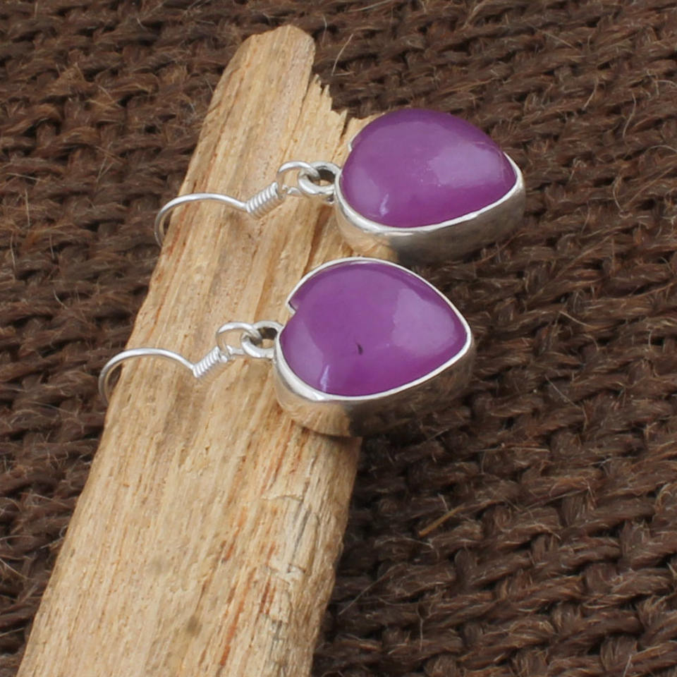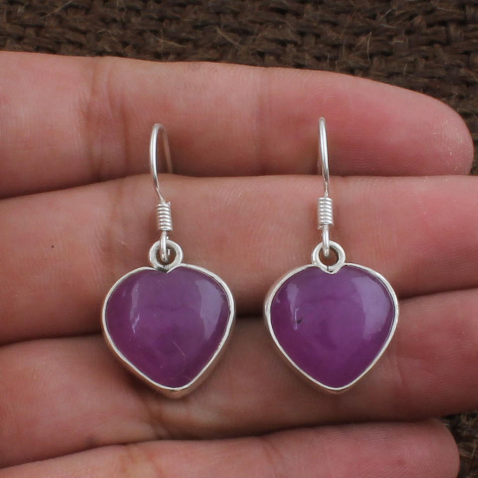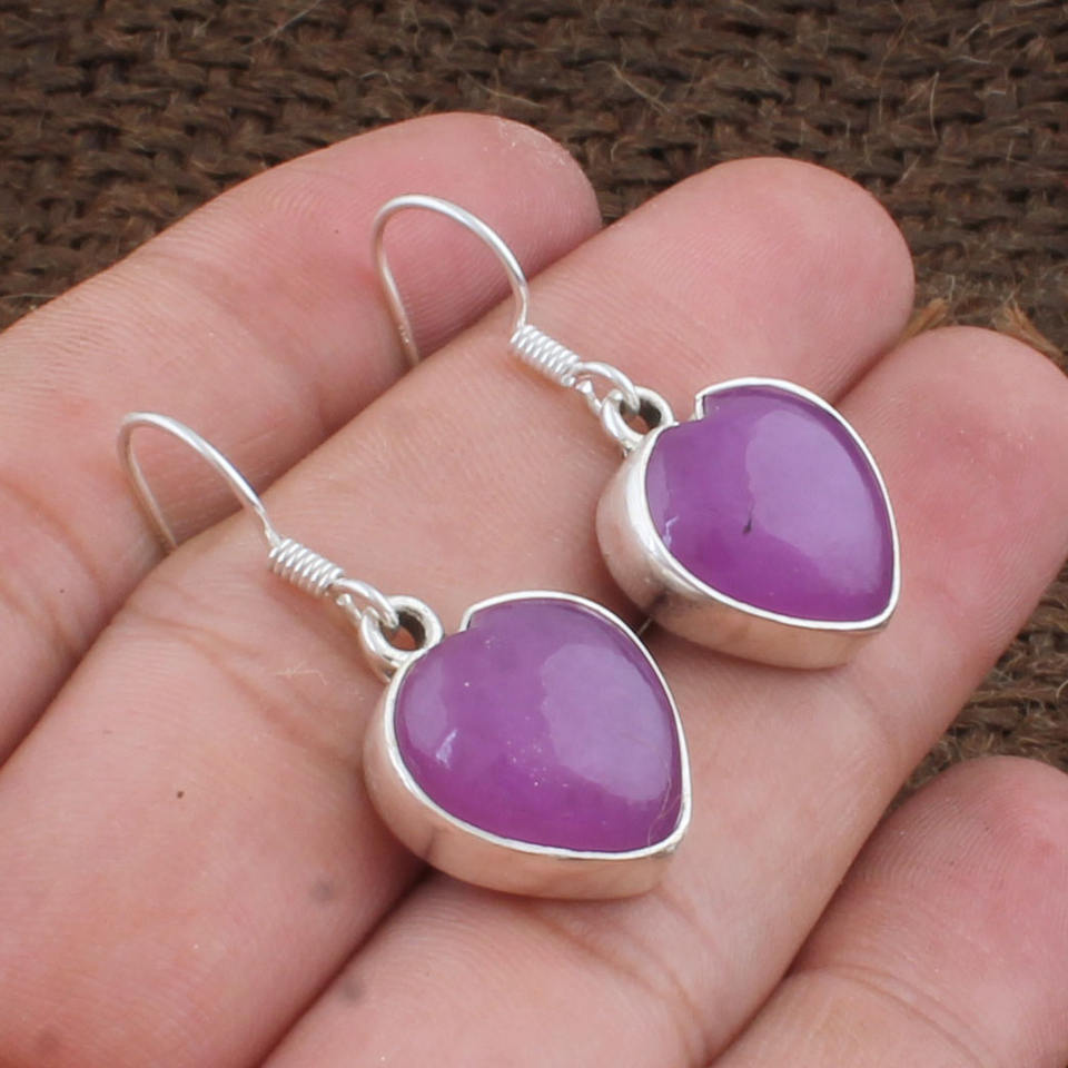 ต่างหูหยดน้ำรูปหัวใจหยกลาเวนเดอร์ธรรมชาติ 925 เงินสเตอร์ลิงอัญมณีสีม่วงหายากเครื่องประดับผู้หญิงของขวัญวันครบรอบงานปาร์ตี้