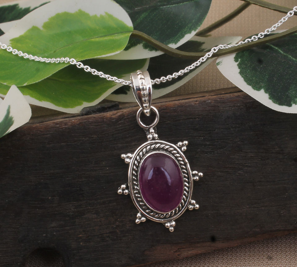 จี้หยกลาเวนเดอร์ธรรมชาติ สร้อยคอหยกพม่าสีม่วง สำหรับทั้งชายและหญิง เงินแท้ 925 ชุบแพลตตินั่ม ดีไซน์วินเทจแบบฝังขอบ
