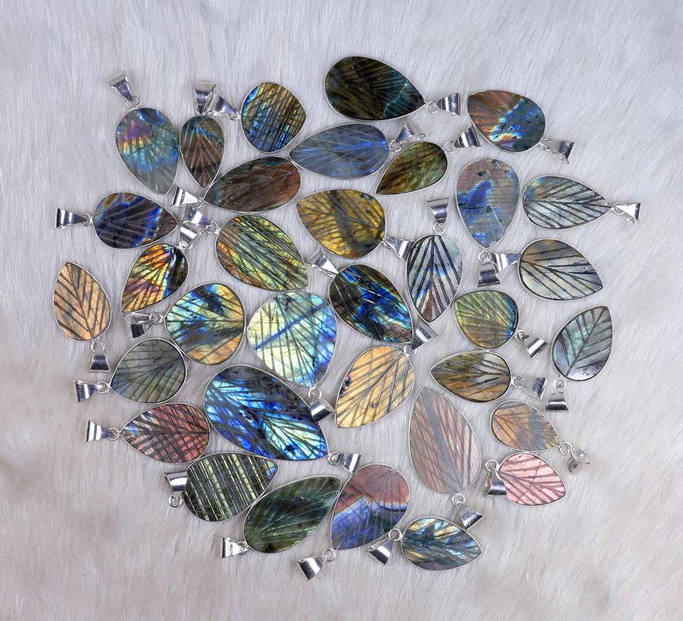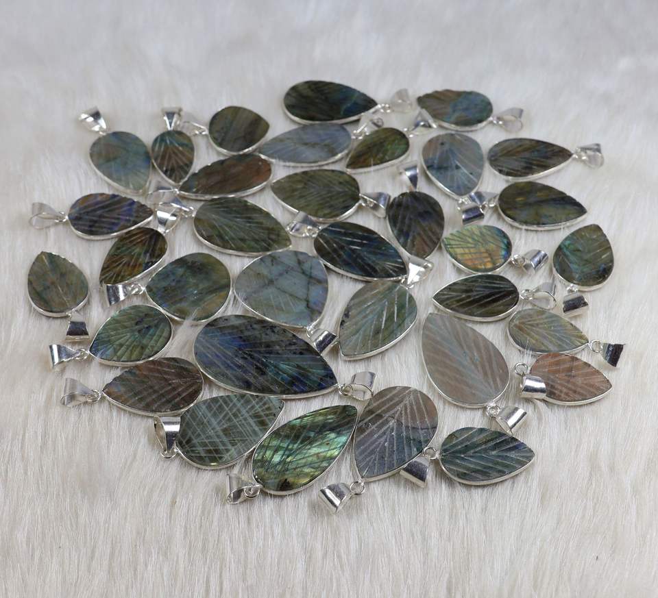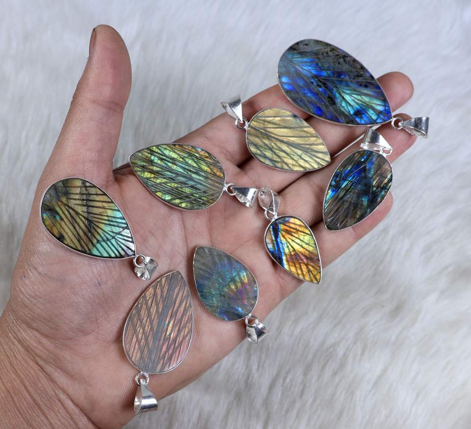 จี้หินอัญมณีลาบราดอไรต์ธรรมชาติจี้แบบฝาจี้หินลาบราดอไรต์สร้อยคอเงินสเตอร์ลิง
