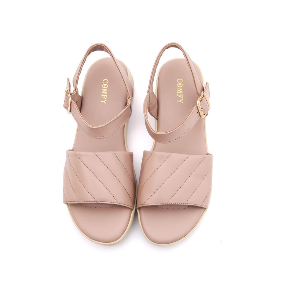 รองเท้าแตะส้นเตี้ยหนังธรรมชาติน้ำหนักเบาระบายอากาศได้ดี, คอลเลคชั่นฤดูร้อนพื้นรองเท้า PU ทนทานสวมใส่สบายยาวนานโฟมเนื้อนุ่ม