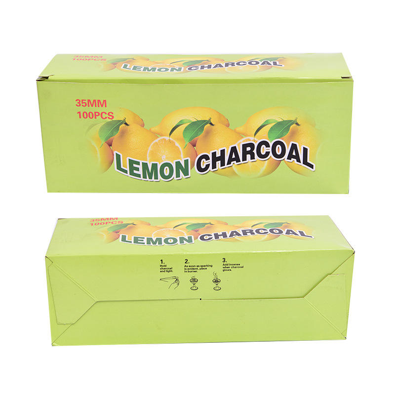 ถ่านไม้เลมอนธรรมชาติและถ่านไม้เนื้อแข็งไร้ควัน ระยะเวลาการเผาไหม้ 120 นาที สำหรับบุหรี่ฮุคก้า