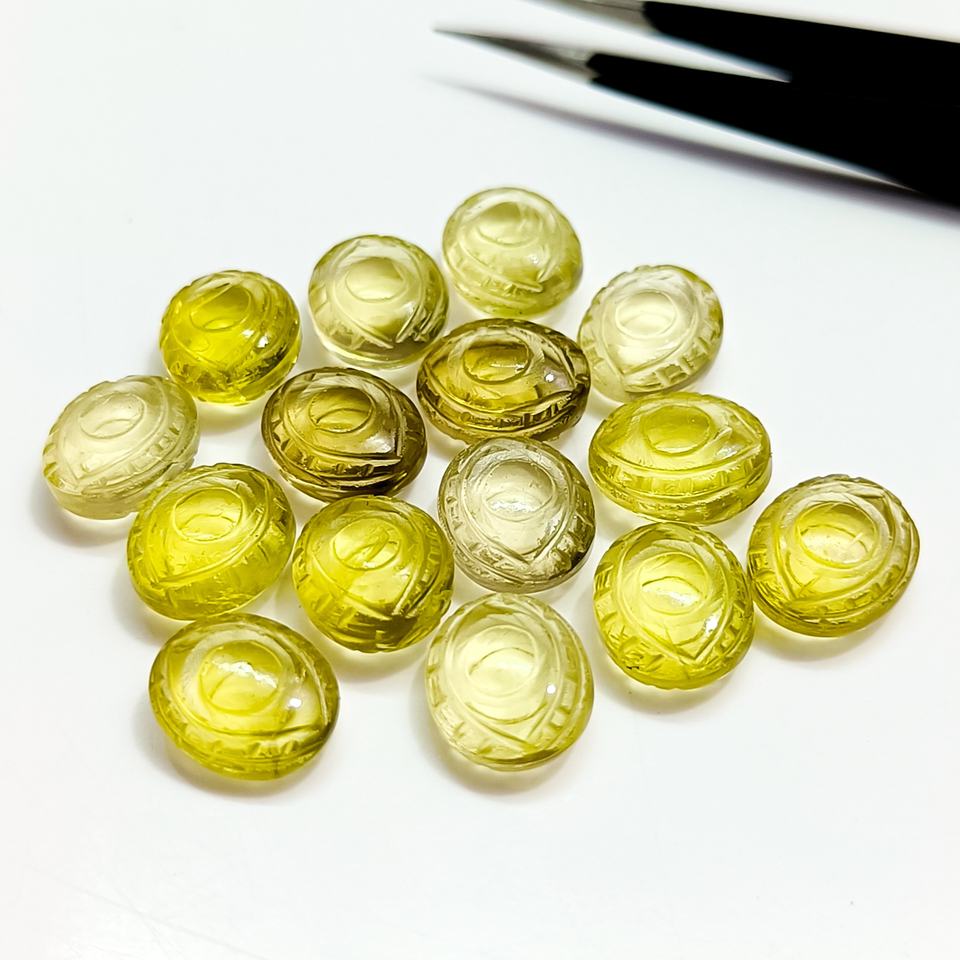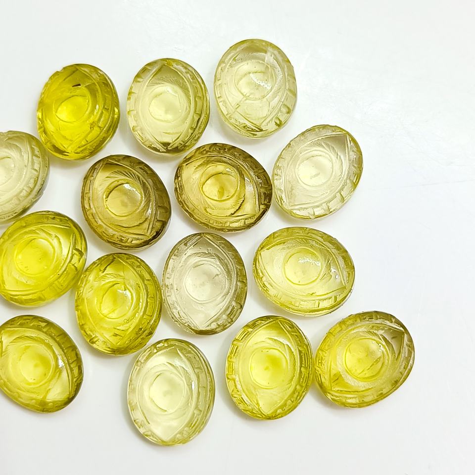 หินควอตซ์เลมอนธรรมชาติแกะสลักลายตาปีศาจสำหรับทำเครื่องประดับ ขนาด 12 มม. หินควอตซ์เลมอนรูปทรงแฟนซี ลูกปัดหินบริอเล็ตจำนวนมาก
